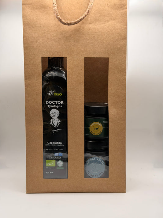 Vor 25 Jahren begaben wir uns auf eine besondere Mission: die Suche nach dem perfekten Olivenöl. Diese Suche führte uns zu Doctor Tyrologos, einem Experten, dessen Produkte uns sofort begeisterten. Was als Suche nach Olivenöl begann, hat sich mit der Zeit zu einer Entdeckung zahlreicher weiterer Schätze entwickelt. Von speziellen Gewürzen und Kräutern bis hin zu erlesenem Honig von Ilias – unsere Produktpalette ist stetig gewachsen.