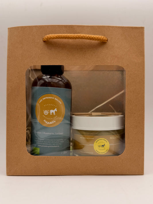 Pflegeset Haar & Haut I Haaröl 100 ml + Calendula-Propolis Salbe 67 g