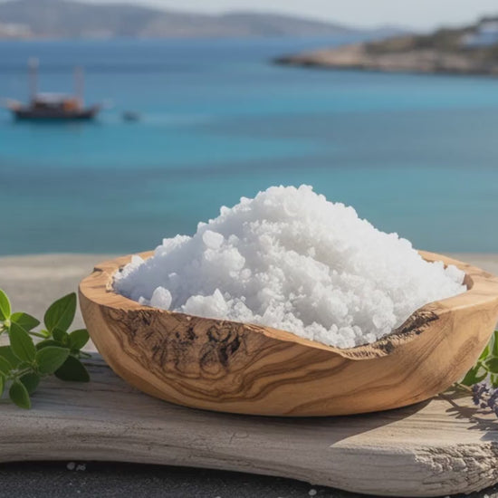 Dieses Fleur de Sel aus Kreta stammt von der griechischen Insel Kreta und wird traditionell von Hand geerntet . Die feinen Salzblüten entstehen als zarte Kristallschicht an der Oberfläche der Salzgärten und werden behutsam abgeschöpft. Anschließend trocknen sie ausschließlich an der Sonne – ohne Raffination, ohne industrielle Verarbeitung.