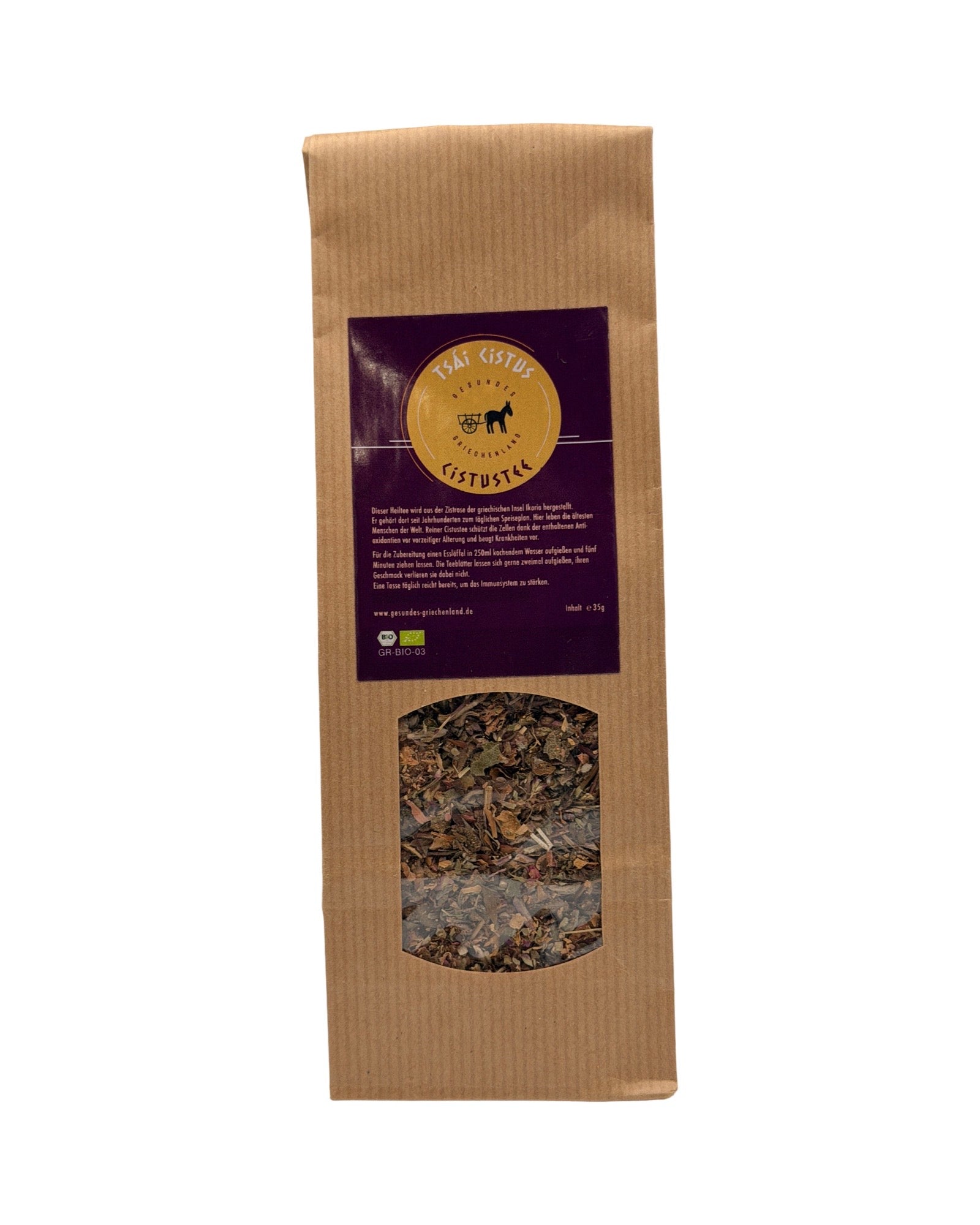 Unser Cistus Heiltee wird aus der Zistrose der griechischen Insel Ikaria hergestellt. Dort wird er traditionell von Hand geerntet und an der Sonne getrocknet.