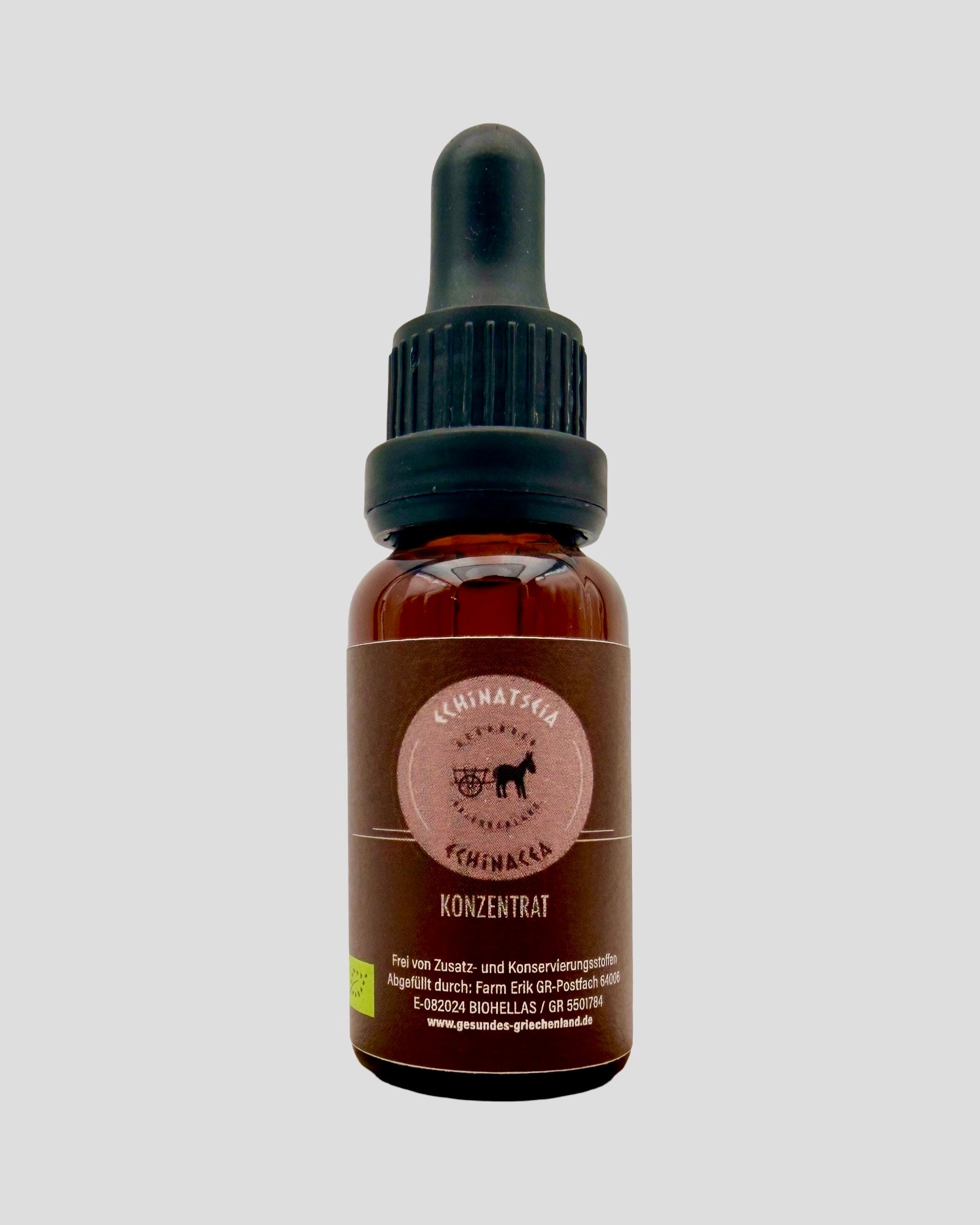 Echinacea Konzentrat lässt sich pur einnehmen. Außerhalb eines direkten Bedarfsfalls kann auch eine jährliche 14-tägige Prophylaxe durchgeführt werden. Dazu dreimal täglich 15-20 Tropfen pur einnehmen.