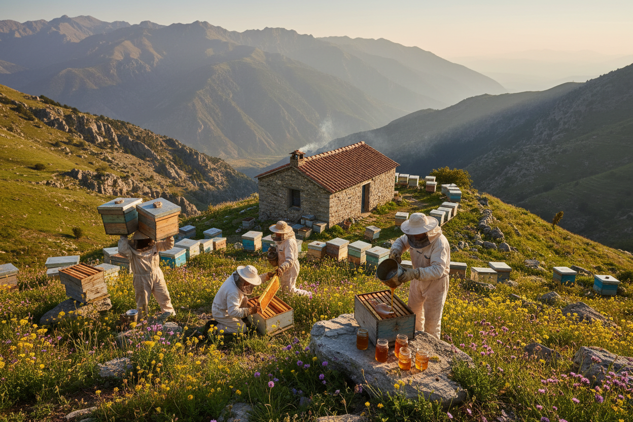 Die Bienen sammeln Nektar aus einer vielfältigen mediterranen Blütenlandschaft. Der Honig wird kaltgeschleudert , nicht erhitzt und nicht gefiltert – so bleiben Aroma, Enzyme und natürliche Inhaltsstoffe bestmöglich erhalten.